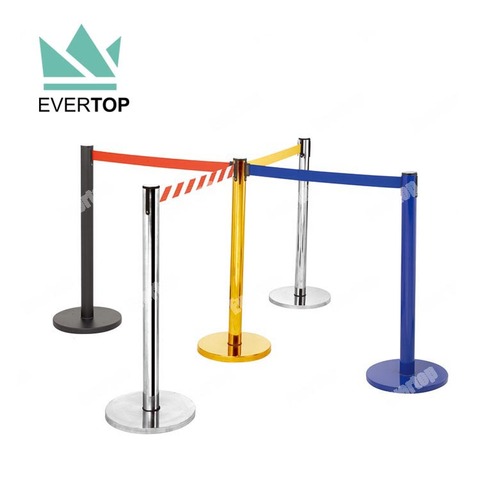 TS-H2 Metal Steel Colorful Retractable belt Post Barrier, Black Queue Crowd Control Post